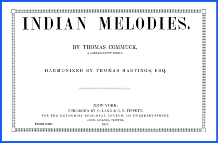 Indian Melodies by Thomas Commuck was the first musical publication by a Native composer in the U.S., and was published with 4-shape note-heads. This inexpensive, legible, and complete edition is designed for use by Sacred Harp and shape note singers. As a Methodist himself, Commuck mostly drew on Methodist hymn texts. It is sold at cost, and I make no profit from this book; those who use this book are encouraged to send donations to the Brotherton Indian Nation.