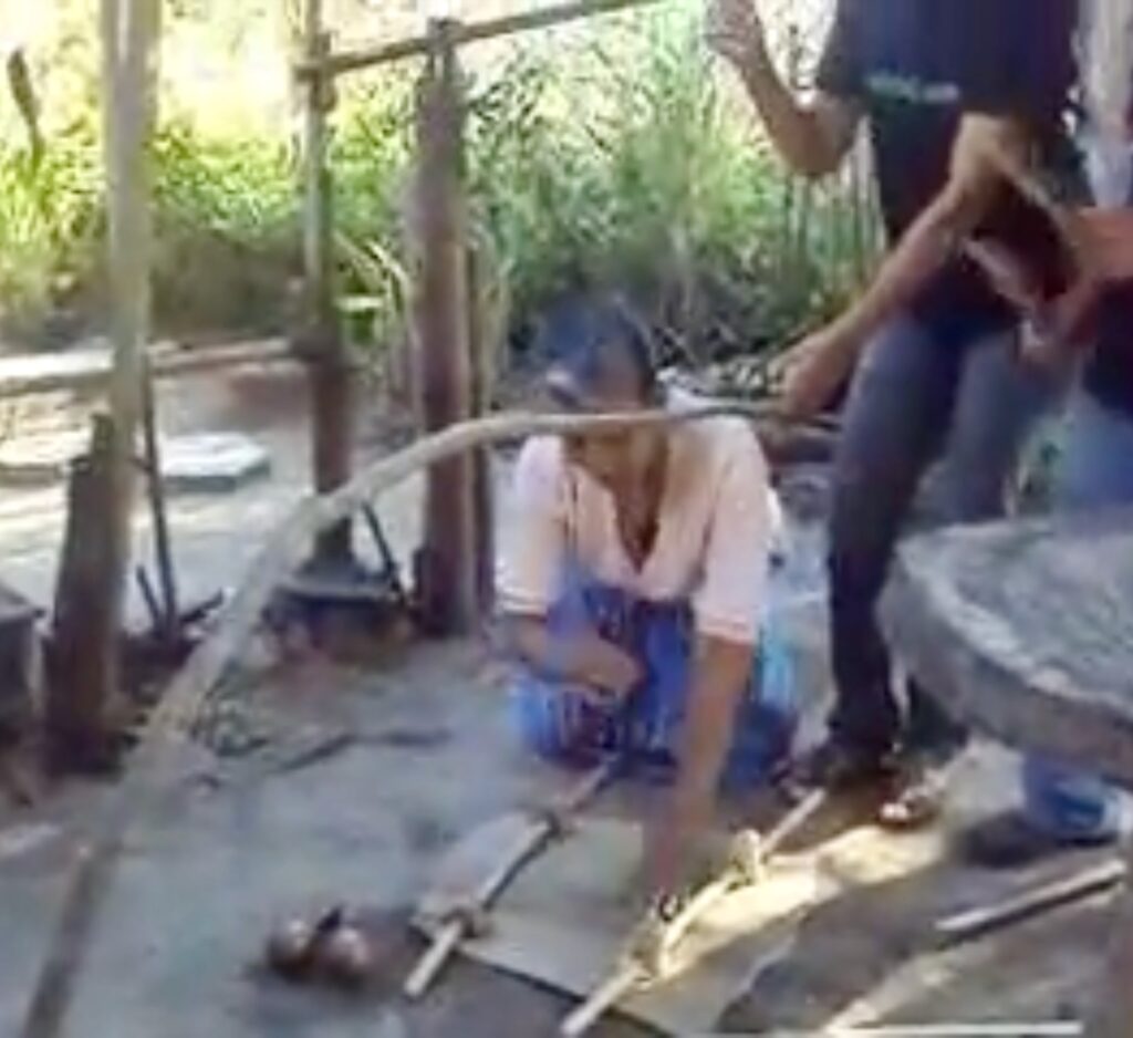 Screen grab from the Facebook video. They’re attaching the neck to the bucket.