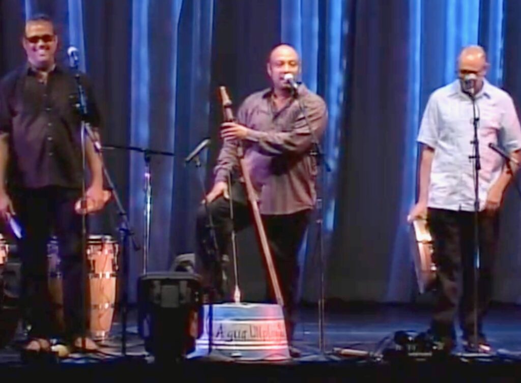 Screen grab from the 4th Puerto Rico video. The tumbandero (at far left) is made out of a 5 gallon plastic bucket.