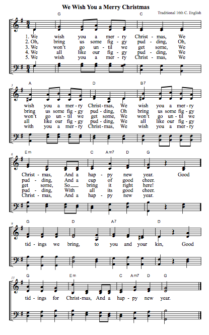 One of the songs Paul usually has the children sing is “We Wish You a Merry Christmas.” Actually, it’s a great song for anyone to sing. I found an old four-part arrangement, simplified it, added guitar chords — and here it is, in a PDF version that’s copyright-free and sized right to go into the typical order of service: