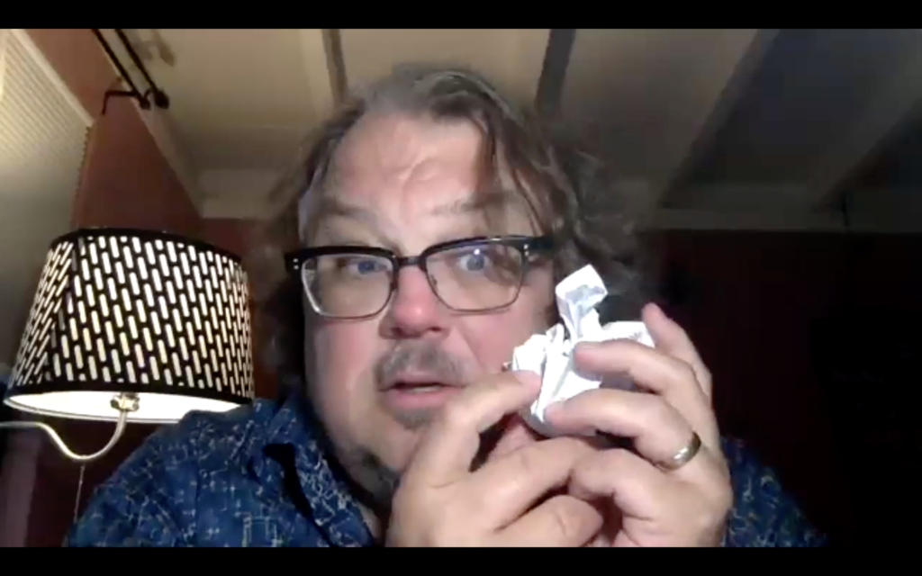 Sarah: I guess it doesn’t take much to turn someone into Trashman. Like this. Greg, here’s some trash! [throws crumpled paper]