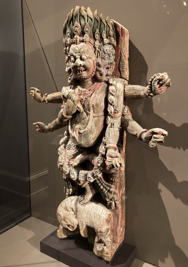 This representation of the deity Bhairava, now in the Walters Art Museum in Baltimore, was once part of a building in Nepal’s Kathmandu Valley. The deity was an integral part of a wooden support that supported an overhanging eave.