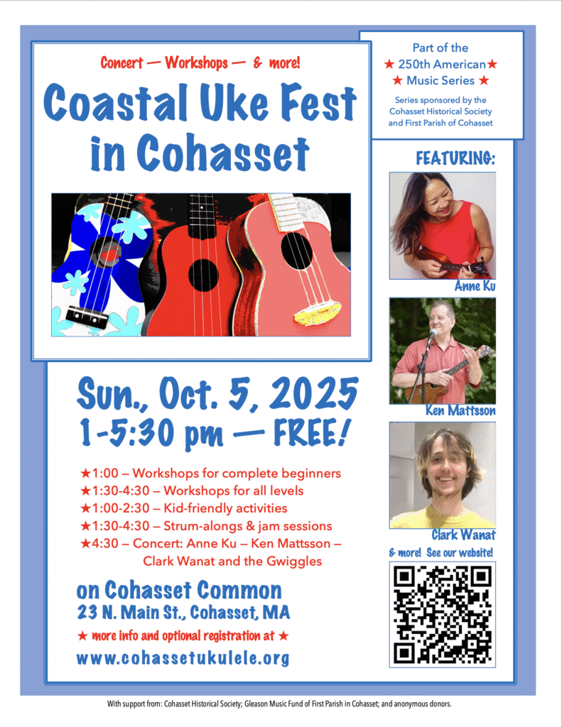 Our twice-monthly ukulele group will be hosting a half-day ukulele festival on Sunday, October 5, 2025. More info here.
