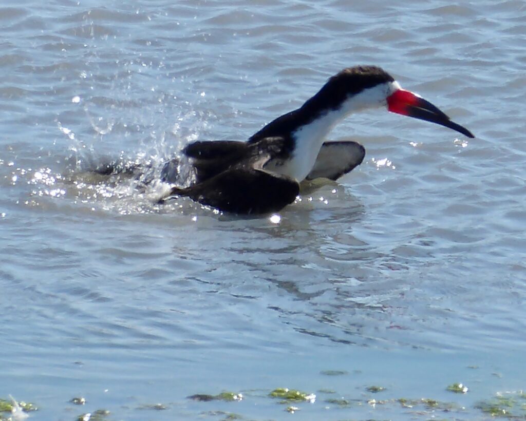 At lunch time, I drove down to the marshes at Baylands Nature Preserve. A baby American Avocet stood at the edge of the water swishing its tiny beak back and forth to gather insects and other invertebrates from the water, just like the adult avocets a few yards away. Out in deeper water, a Mallard hen watched carefully over two baby Mallards swimming on either side of her. I couldn’t help noticing the difference in the way the two species raise their young: the American Avocet is a precocial species whose young are on their own from hatching, while the Mallard is an altricial species whose adults care for their babies for some time. It seemed that everywhere I looked I saw birds nesting or getting ready to nest: Cliff Swallows building their nests of clay on the side of a building, Forster’s Terns apparently nesting on a tiny island in the middle of the marsh, Marsh Wrens warbling madly in the rushes.