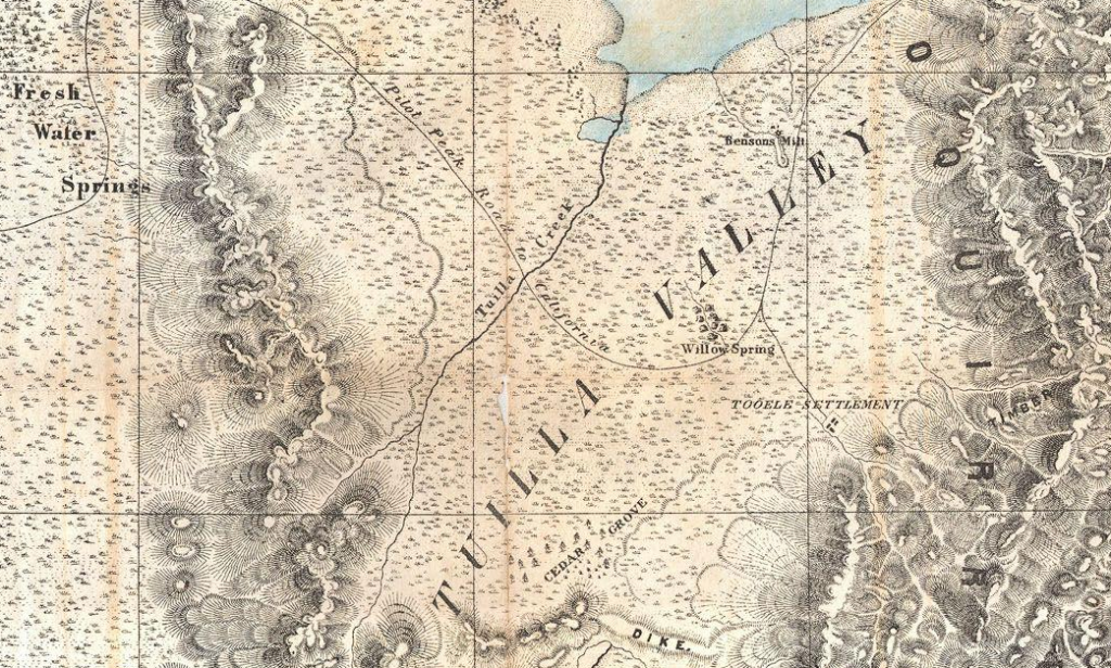 Edwin Bryant, in his 1848 book What I Saw in California, described how his party made the difficult crossing of the salt flats west of Great Salt Lake, and then made their way across the often steep and difficult terrain of what is now western Nevada, finding barely enough water, and barely enough grass for their mules, at widely spaced springs. After more than a week of travel through this harsh desert, Bryant and his party found a small tributary stream which finally led them to the Humboldt River (which they called Mary’s River):