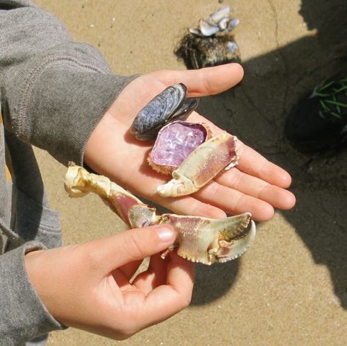When we got home, I did some online research to find out what kind of Cnidarian this was. I concluded it was a Moon Jellyfish, the common name of Aurelia species; most likely Aurelia labiata, which the authorities I consulted online agreed was the Aurelia species found along the San Mateo County coast. More specifically, what I saw was most likely the central morph of Aurelia labiata, the type specimen of which came from Monterey Bay (M. N. Dawson, Macro-morphological variation among cryptic species of the moon jellyfish, Aurelia [Cnidaria: Scyphozoa], Marine Biology [2003] 143:369-379).