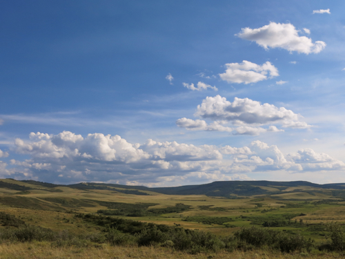 I stopped for a moment at a roadside rest area where I looked out over Rosebud Creek. The old Chinese art critics said the highest form of landscape painting depicted a landscape that you could wander in. This was a landscape you could wander in: the railroad winding between a cliff and a river; a large island in the river; ranch buildings just visible hear an there among the wide-spaced trees; mysterious bluffs in the distance leading to a hidden prairie beyond.